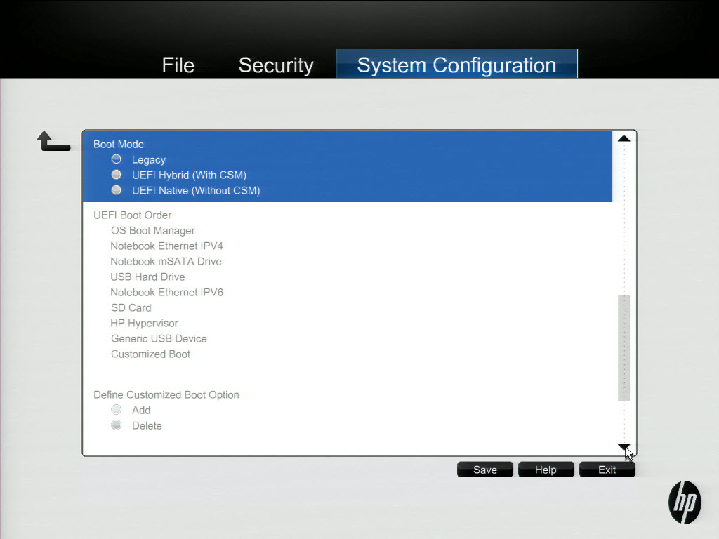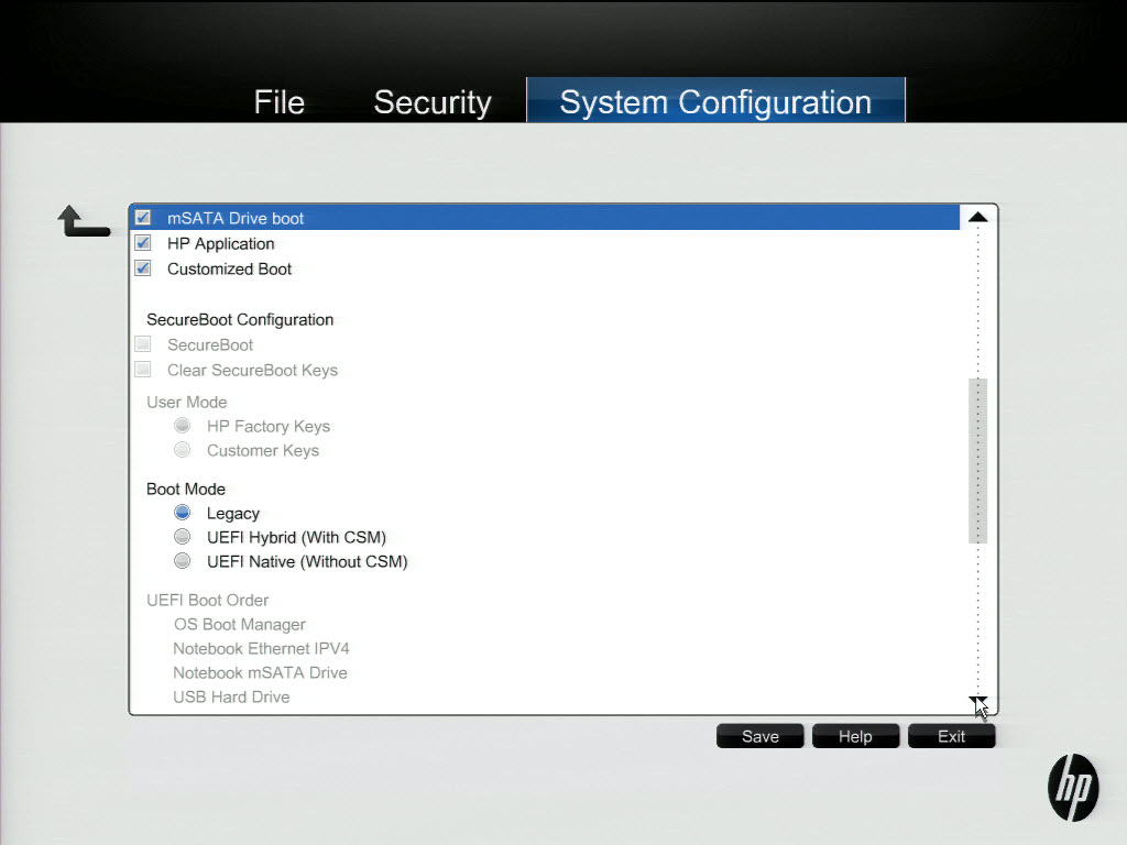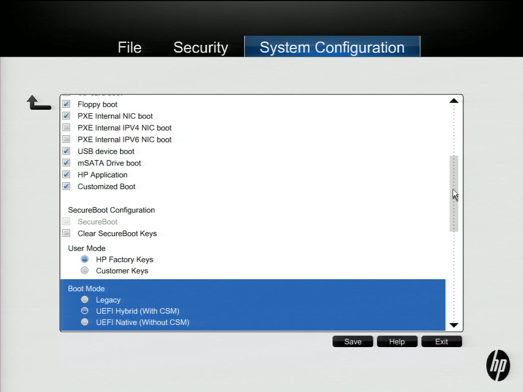 The following screen shots were taken from a HP EliteBook Folio 9470m. I plan on explaining some of the necessary settings in the future as they relate to UEFI and Secure Boot for Windows 10, but for now if you need some screen shots for documentation or are just curious as to some of the settings feel free to use the ones below. I did not grab every screen, but I did get the important ones.