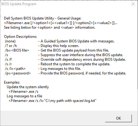 Using the tool is pretty simple, you use it in addition to the BIOS exe that you have already downloaded. I’ll cover off how I use it in a Configuration Manager Package in another post, but for now, here is how you use it: