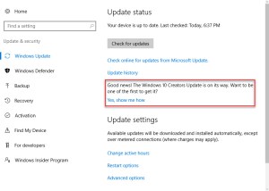 You may have noticed a message under Update status in Settings after installing the March 2017 cumulative update that says “Good news! The Windows 10 Creators Update is on its way. Want to be one of the first to get it?” and a link below that says “Yes, show me how“.