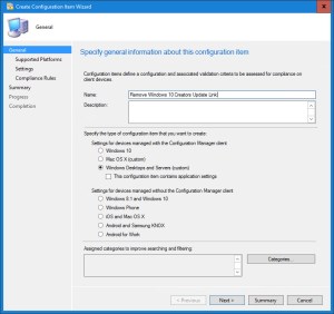 Create a new Configuration Item and give it a name (like Remove Windows 10 Creators Update Link)
