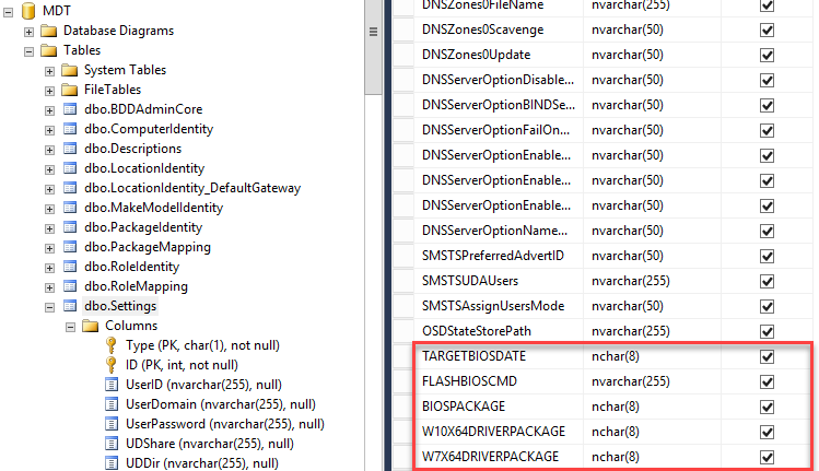 12. Nothing having much luck getting this to work. In your BIOS.ini, you call tables “ComputerSettings” and “MakeModelSettings”, but when I actually look in the MDT database, they’re called “ComputerIdentity” and “Settings”