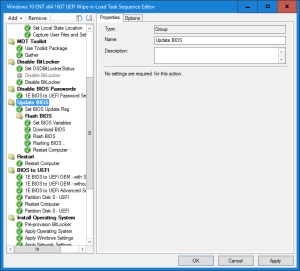 7. Create the Update BIOS Group with the following steps and conditions:
