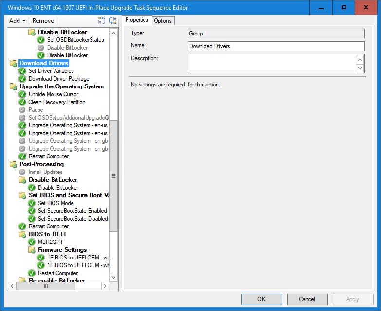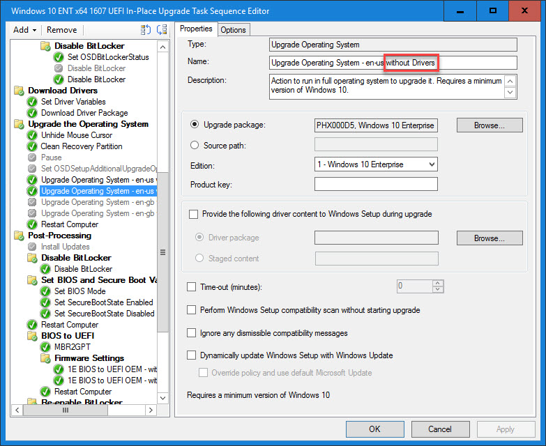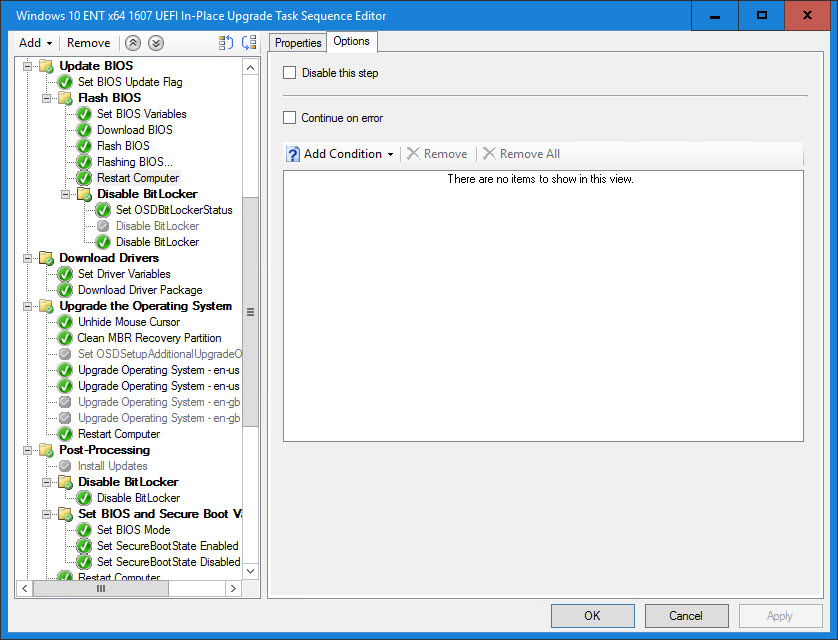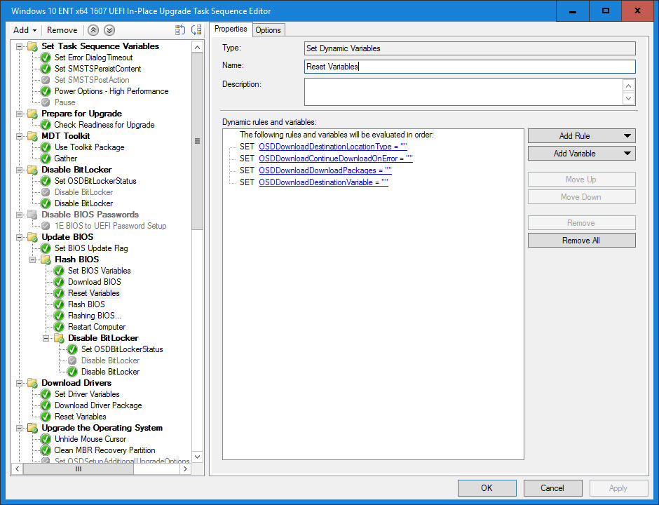 The following section is for an In-Place Upgrade Task Sequence