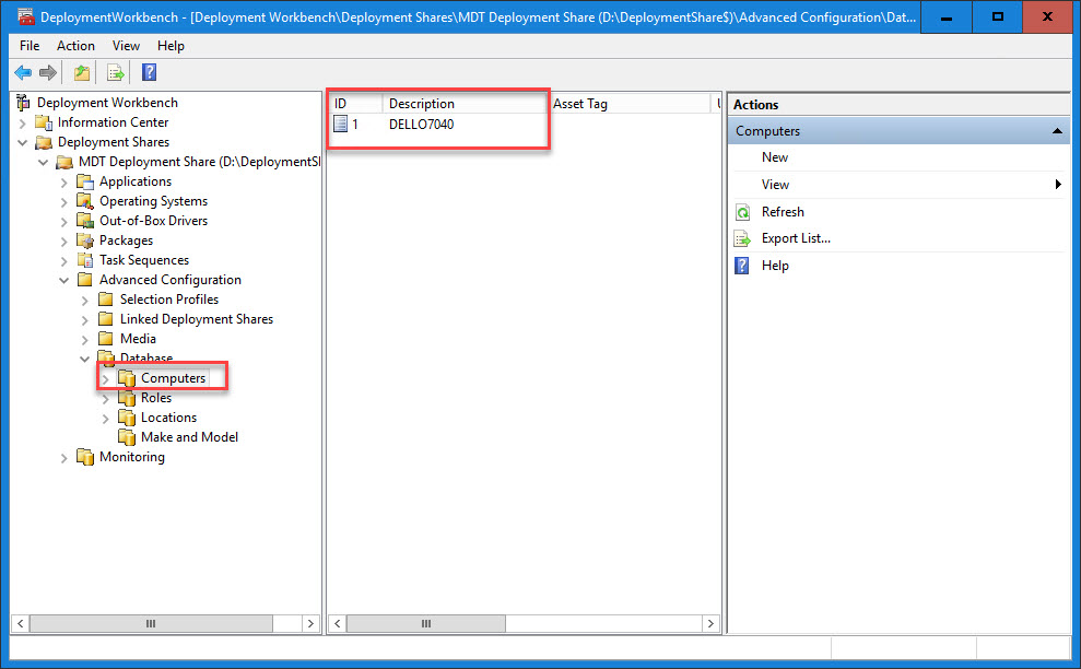 5. A MDT database is setup and configured