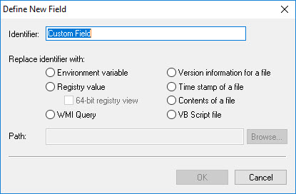 Looking at the possibilities, we see the options to select Environment variable, Registry, WMI Query, Version information for a file, Time stamp of a file, Contents of a file, or VB Script file (wait – no PowerShell option?? Quick, some tell Mark Russinovich to update this thing before Jeffrey Snover finds out).