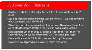 - Goal – to rebuild (refresh) a Surface Pro 2 over Wi-Fi in sub 15 mins