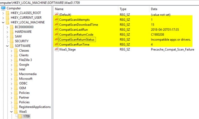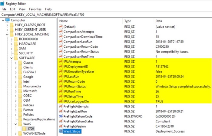 Great stuff, really incredible. I’m trying to implement all of this, between you and Gary’s site. I’m not good at WQL queries, and am stuck at trying to create a collection that will capture the value at HKLM\Software\WaaS\1709\CS_SetupEngineReturn (my hardware class is already extended), so I can target the successful ones for upgrade. Could I get you to share your collection query on that? Thank you.