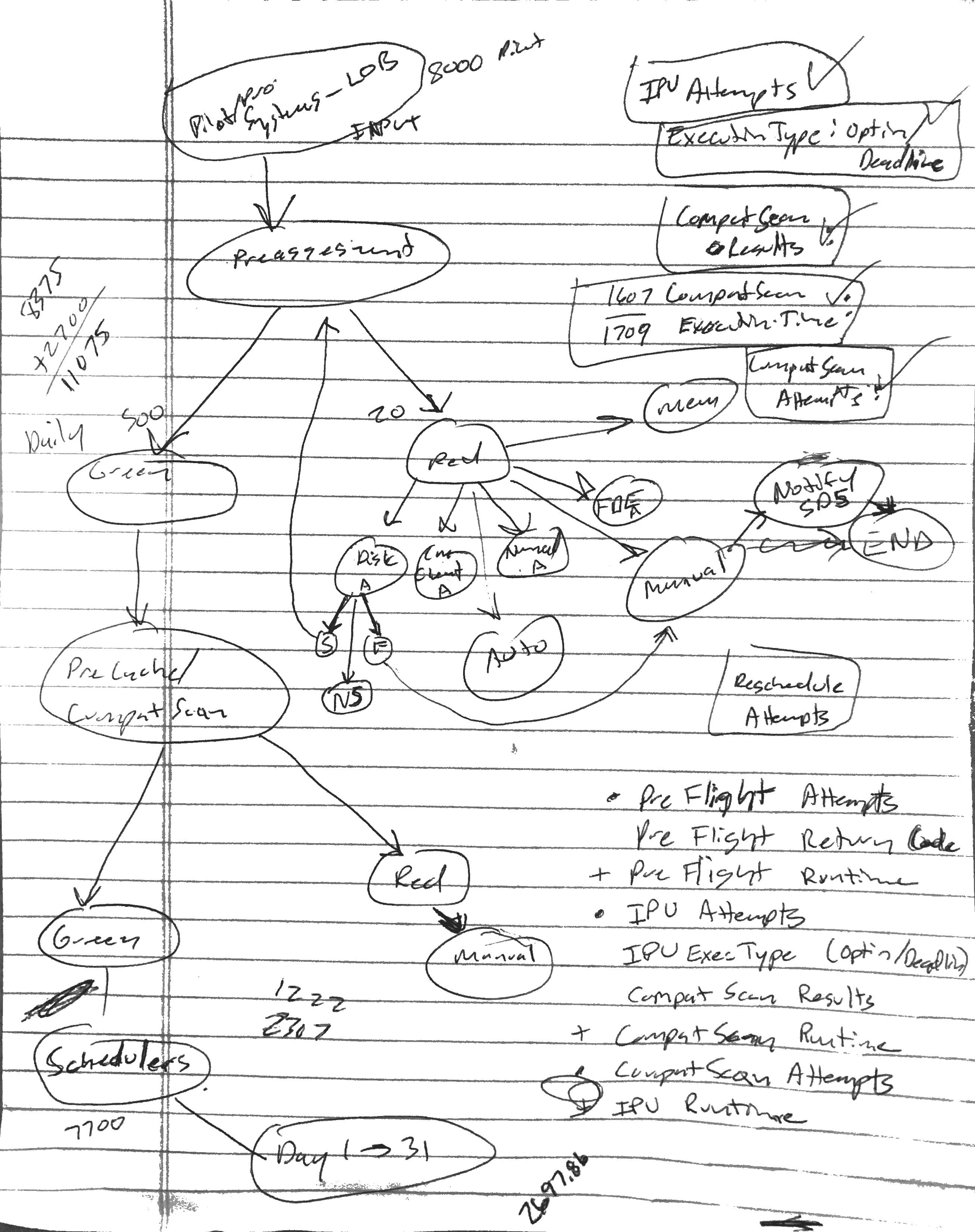 Lastly, so of our other requirements involved gathering better metrics. We wanted to know what our first time success rates were going to be as we didn’t have any of this information before. Other things of interest were runtimes – how long is this taking? Are the end users opting into the process or waiting for the deadline? Are they on the corporate network or VPN? All this data we want to collect so that we can use it to help define success to our management, use it to possibly diagnose problems, and also use it to further improve our processes.