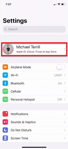 Starting off in Settings, click on your Apple ID