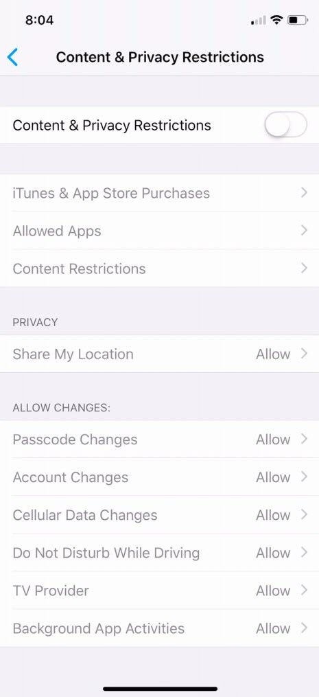 And you can also set other Content & Privacy Restrictions: