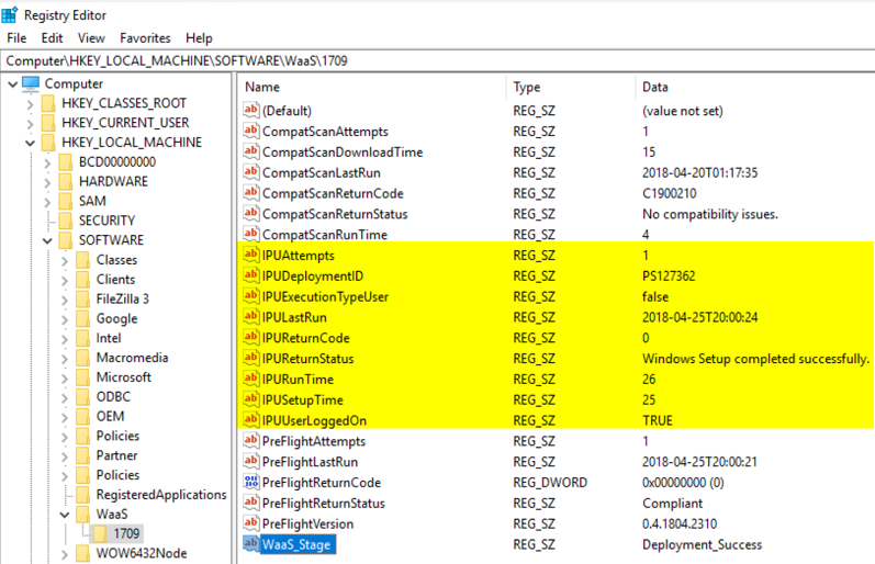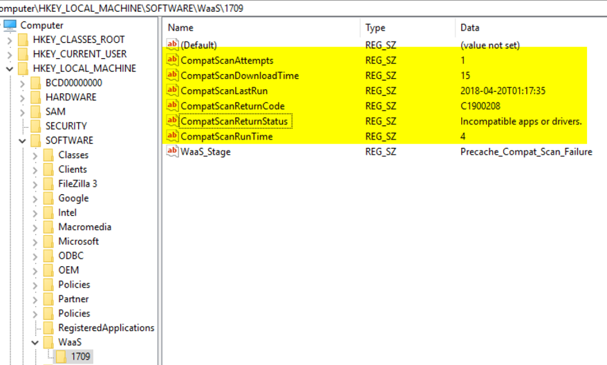 One interesting thing that we found out was that running a compat scan only (i.e. using the TS Upgrade Operating System step with the Perform Windows Setup compatibility scan without starting upgrade option) put the client in provisioning mode. This was bad since we were running the Pre-cache/Compat Scan TS completely silent and sometimes a device would be powered off during this process effectively leaving the client in provisioning mode. We had put some fail safes in the TS so that it would pull it back out after a period of time and we also created a User Voice item. This is now fixed in CB 1806, the client now does not go into provisioning mode when only running a compat scan. My colleague Gary Blok has a post called WaaS – Post 1 – PreCache Compat Scan TS that goes into the details of the Pre-Cache/Compat Scan TS and even provides a sample that can be downloaded and imported.