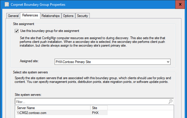 In this example, every IP range is accounted for so I have not defined a relationship to the Default Site Boundary Group (or any other Boundary Groups). However, your configuration may be different: