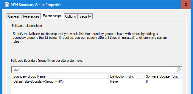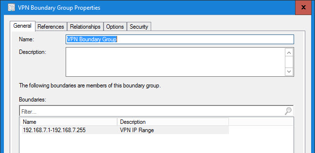 Just curious why the rule on the additional boundary groups when the VPN boundary group is limited to a specific IP range and no fallback. I’d think if a DP were to go down we’d want the onsite devices able to reach another DP.