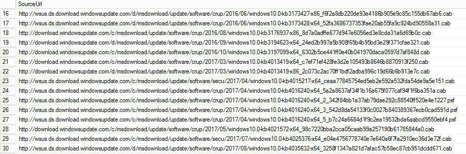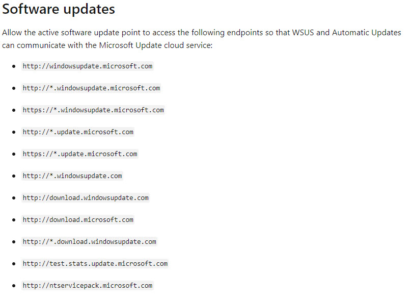 Now for the URLs. There is not a public Microsoft doc/KB (at least that I know of) that says these are exactly the URLs that are required for this feature when defining Client -> MU traffic. However, most of them are similar to what the SUP uses when it downloads the content.