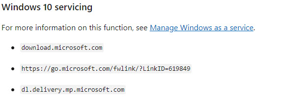 • We also noticed that the Windows updates are being downloaded from a range of IP addresses owned by Microsoft, however, the IP addresses aren’t resolvable to any domain names. We opened a ticket with Microsoft earlier this week and asked if they could provide the URLs and IP ranges needed for split-tunneling the download of both Windows and Office 365 updates, however, I suspect they will be hesitant to commit to an answer as the CDN networks could change over time. Another concern is that the CDNs are most likely Geo-based and could be a factor here. I agree, the issue is with the VPN configuration. The bigger question is has anyone else successfully split tunneled Windows / Office 365 updates and if so, how did they accomplish it? You mentioned you don’t believe that I’ll ever be able to list all of the CDNs if that’s my approach, however, what approach should I be attempting here?