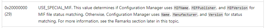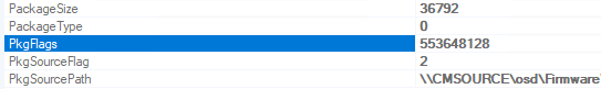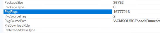 Ok, this meant it was time to fire up the handy documentation and figure out what these values actually mean. This is in the SMS_PackageBaseclass Class and there is a nice definition of the properties that are controlled by PkgFlags. 0x20000000 looks like the one that we want to check for: