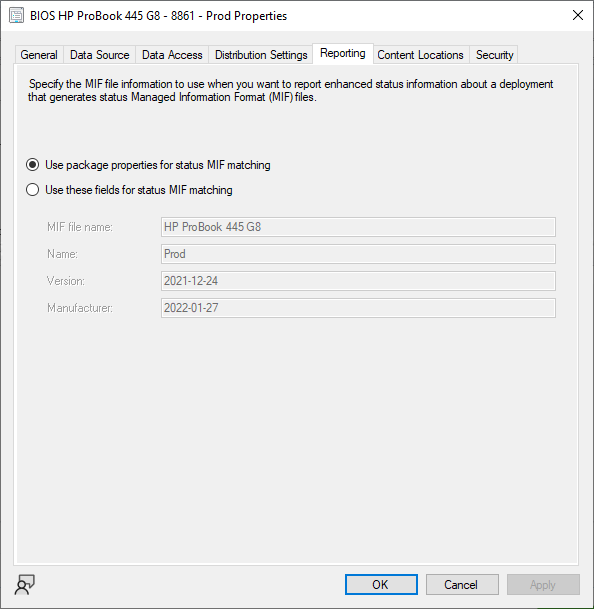 If you are familiar with the work that Gary Blok and I have done on BIOS and Drivers, you will already know that we like to use extra fields on the Package properties to store meta date that we use for reporting and automation. Four of the fields that we like to use are on the Reporting tab of the Package Properties: