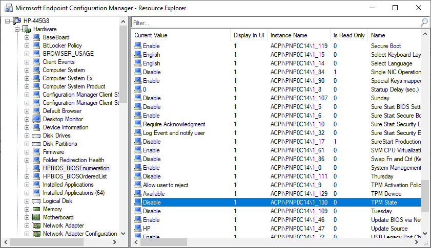 (See my post How to Inventory HP BIOS and UEFI Settings with ConfigMgr on how to get this data back via hardware inventory)